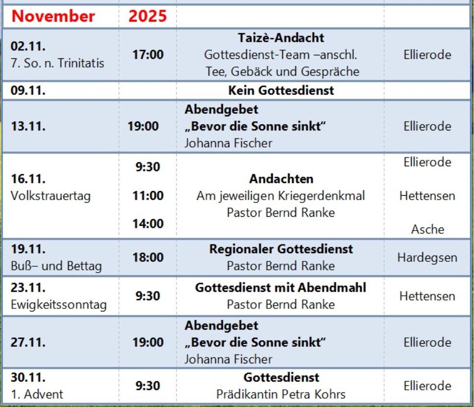 ,Predigtreihe Stolpersteine 2021Die Neuauflage der Predigtreihe „Stolpersteine des Glaubens“ fand aus besagten Hygienevorschriften kontaktlos im Internet statt. Durch anklicken der Zeile startet das Video auf youtube.de: Teil 1:Dr. Martina Steinkühler: “Hauptsache gesund?”Pastor Nicolas Buschatzky: “Ist Gesundheit Aufgabe der Kirche?”Teil 2:Teil 3: Klaus Dettke: “Heilung - Zeichen der Herrschaft Gottes”Teil 4: Christiane Möhle: “Hilft beten?”Predigtreihe Stolpersteine 2022Wer aus Pandemieschutzgedanken den Weg zur Kirche gescheut hat, kann sich trotzdem die Predigten im Nachhinein hier anschauen. Sie werden kurz nach den Gottesdiensten veröffentlicht.Predigt 1: Pastor Nicolas Buschatzky: “Hat es überhaupt Sinn, an die Zukunft der Kirche zu glauben?”Predigt 2: Pastor Hartmut Gericke-Steinkühler: “Kirche ohne Pastor?! - und trotzdem die Kirche im Dorf lassen!Predigt 3: Eine Aufzeichung war aus rechtlichen Gründen leider nicht möglich. Predigt 4: Pastor Bernd Ranke: “Wir brauchen zukünftig mehr Miteinander und Füreinander!””:archiviert:Gottesdienstreiche “Stolpersteine des Glaubens” Thema 2023: “Krieg und Frieden”Manche Fragen können einen zum Stolpern bringen. So ist es auch bei dem Thema „Krieg und Frieden“. Vor dem Hintergrund der aktuellen Situation des Ukraine-Kriegs scheinen alte Glaubensgewissheiten ins Wanken zu kommen. Die Gottesdienstreihe „Stolpersteine des Glaubens“ geht dem nach, was viele Menschen derzeit stolpern lässt.Aus diesem Grund setzt sich ein erster Gottesdienst mit der Beobachtung auseinander, dass die bisherigenGrundsätze christlicher Friedethik durch den Angriffskrieg Russlands in Frage gestellt sind. Wie ein konstruktiver Umgang mit dieser Situation erfolgen kann, wird das Thema der Superintendentin Stephanie von Lingen am 22. Januar in Hettensen sein. Eine Woche später predigt am 29. Januar der Militärpfarrer Michael Fröhlich in Ellierode zur Frage, ob es einen gerechten Krieg geben kann, der unter bestimmten Bedingungen „gottgefällig“ oder moralisch geboten ist. Am darauf folgenden Wochenende ist der Referent für Friedensarbeit aus der Landeskirche Hannovers Felix Paul am 5. Februar in Ellierode zu hören. Er fragt danach, ob der in den letzten Jahrzenten vielfach vertretene Pazifismus einenaive Idee war oder ob er relevanter denn je ist. Den Abschluss der Gottesdienstreihe wird Pastor Martin Possner am 12. Februar in Hettensen vornehmen, welcher Seelsorger im Maßregelvollzug Moringen ist. Er wirf die Frage auf, ob ein nachhaltiger Frieden durch Waffen gesichert werden kann. Alle Gottesdienste beginnen jeweils um 18 Uhr und werden neben Musik von Johanna Fischer durch besondere musikalische Beiträge gestaltet. Zu hören ist etwa der Multi-Instrumentalist Holger Schäfer am 22. Januar, der Fagottspieler Ditmar Wiederhold am 29. Januar und am 12. Februar sowie der Posaunenchor Volpriehausen unter der Leitung von Wolfgang Reuse am 5. Februar. Im Anschluss an die Gottesdienste sind die Besucherinnen und Besucher eingeladen zu Canapés sowie einem Glas Wein und anderen Getränken, um miteinander ins Gespräch über das Gehörte zu kommen. (Quelle: Leine-Solling-Pressedienst)Gottesdienste: